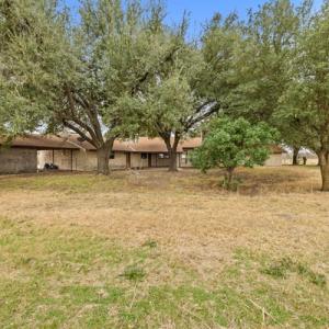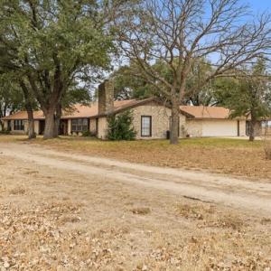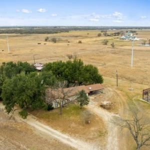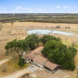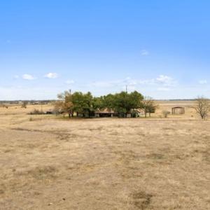 This ranch has a 3 bed 3 bath home ready to remodel with your vision. The land is visible and vast neighboring the Elm Creek. Enriched with mature oaks and pecan trees, the property is currently under a cattle lease keeping your pastures open and free with endless buildable potential, and has an incomplete 20x30 steel building ready to be finished as a storage space or workshop.